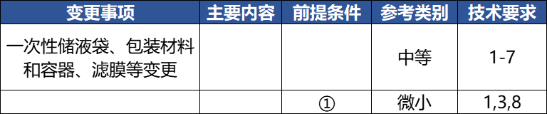 5、如涉及,變更直接接觸的一次性儲液袋、容器、濾膜等,應經過相容性研究和風險評估。