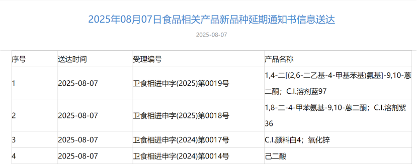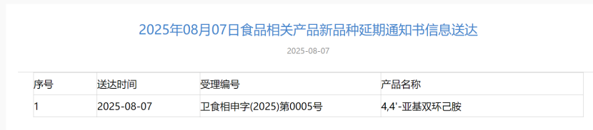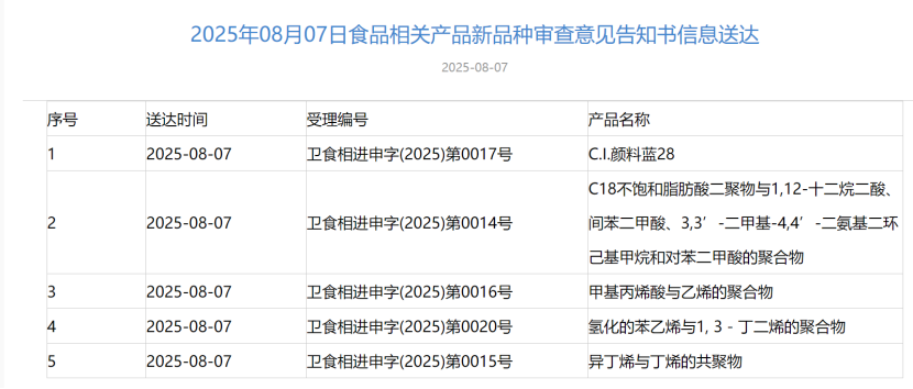 2025年8月7號(hào),國(guó)家衛(wèi)生健康委員會(huì)服務(wù)平臺(tái)發(fā)布“三新食品”審批情況,其中包括:延期通知書(shū)信息送達(dá)5例審查意見(jiàn)告知書(shū)信息送達(dá)5例如下: